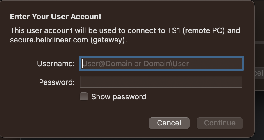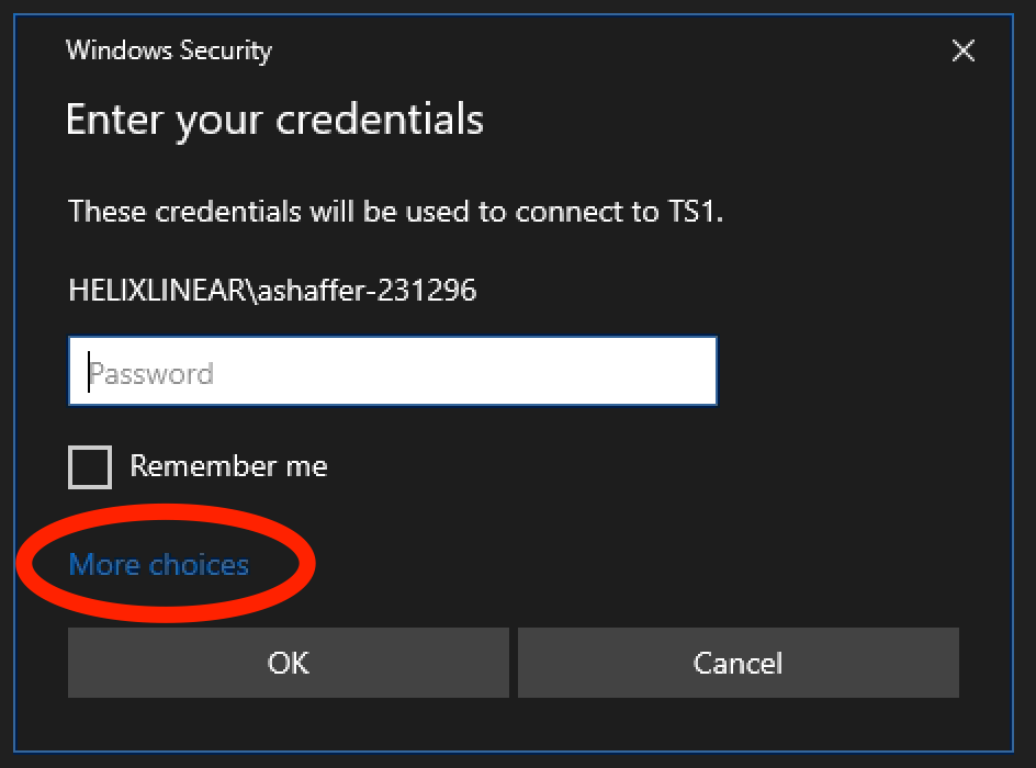 - You do NOT need to enter HELIXLINEAR\ in front of your username